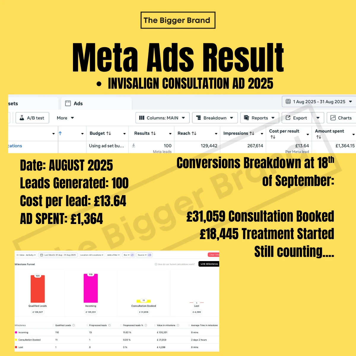 From £2,000 ad spends generating over £20,000 in Invisalign bookings, to composite bonding campaigns achieving 16x ROI, we know how to scale results.